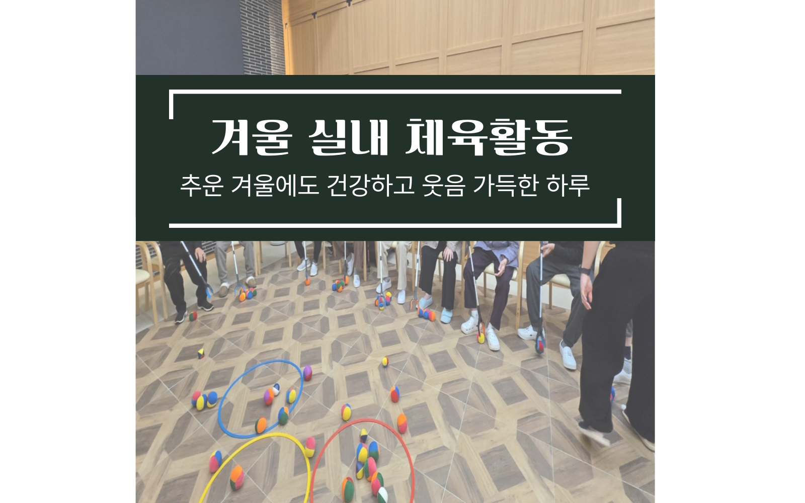추운 겨울에도 건강하고 웃음 가득한 하루안녕하세요, 케어링스테이입니다. 날씨가 추워지면 야외 활동이 줄어들기 쉬운 겨울철, 케어링스테이에서는 어르신들의 건강과 활력을 지키기 위해 겨울 맞이 실내 체육활동 프로그램을 운영하고 있습니다.
