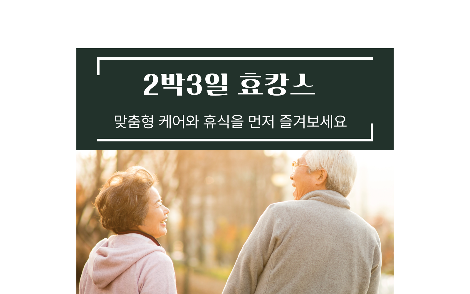 ✅미리 경험해보는 프리미엄 시니어 라이프! 케어링스테이는 어르신들께서 보다 편안하고 풍요로운 삶을 누리실 수 있도록 항상 새로운 서비스와 프로그램을 준비하고 있습니다.이번에는 많은 분들이 기다리셨던 특별한 이벤트, ‘2박 3일 효(孝)캉스 체험 이벤트’를 소개합니다! ✅효캉스란? ‘효(孝)캉스’는 효도 + 바캉스의 합성어로, 어르신께서 휴식과 체험을 동시에 즐기실 수 있도록 ..