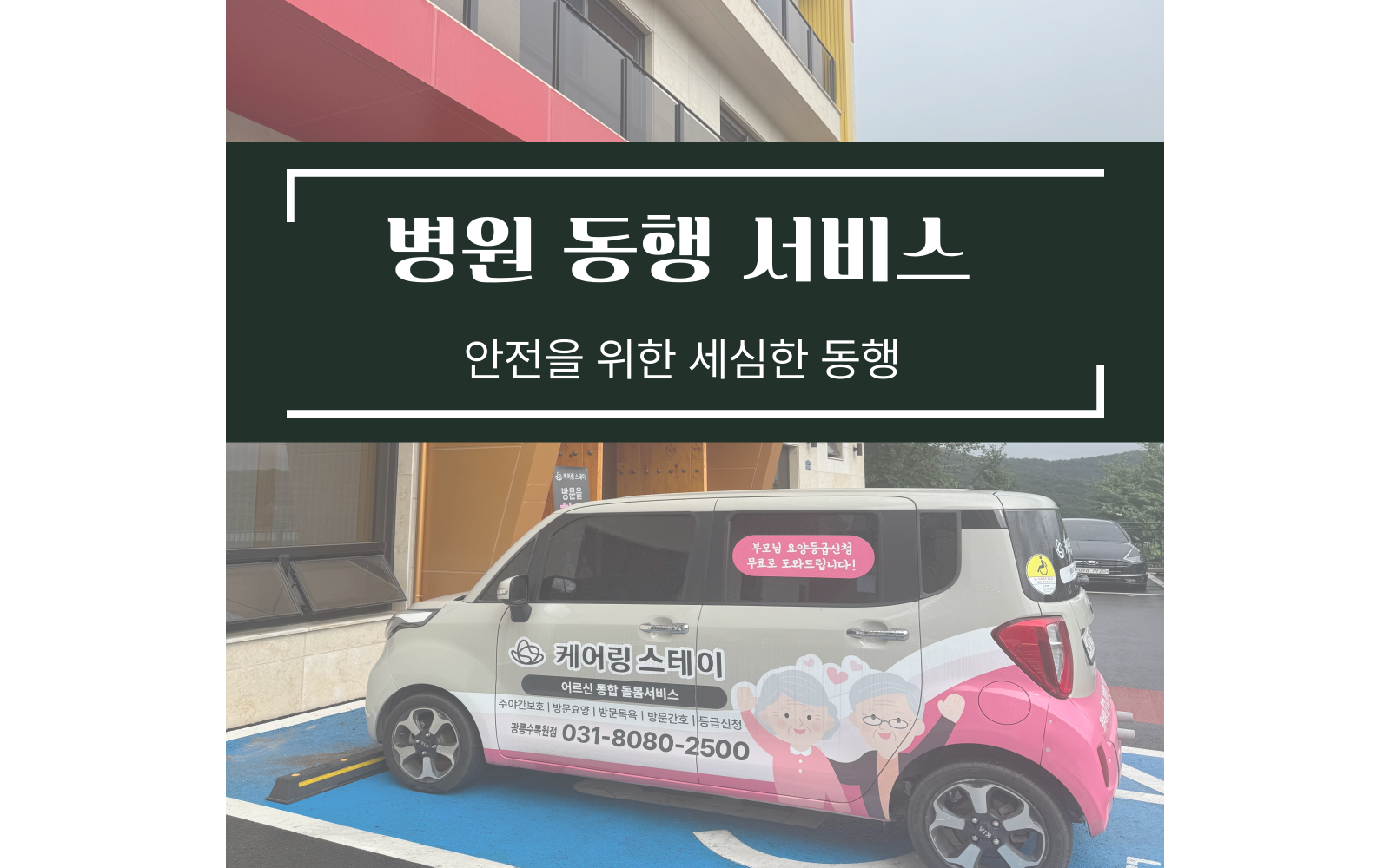 ✅어르신의 편안한 이동과 안전을 위한 세심한 동행 케어링스테이에서는 어르신들의 건강을 최우선으로 생각하며 정기적인 진료나 검사, 치료가 필요하신 분들을 위해 병원 동행 서비스를 운영하고 있습니다. ✅세심한 병원 동행 서비스란? 병원 진료를 받으실 때 혼자 가시기 어려운 어르신들을 위해 전문 간호사와 센터 실장님이 직접 동행합니다.의료적인 부분은 간호사가 꼼꼼히 확인하고, 이동과 행정적인 부분은 실..