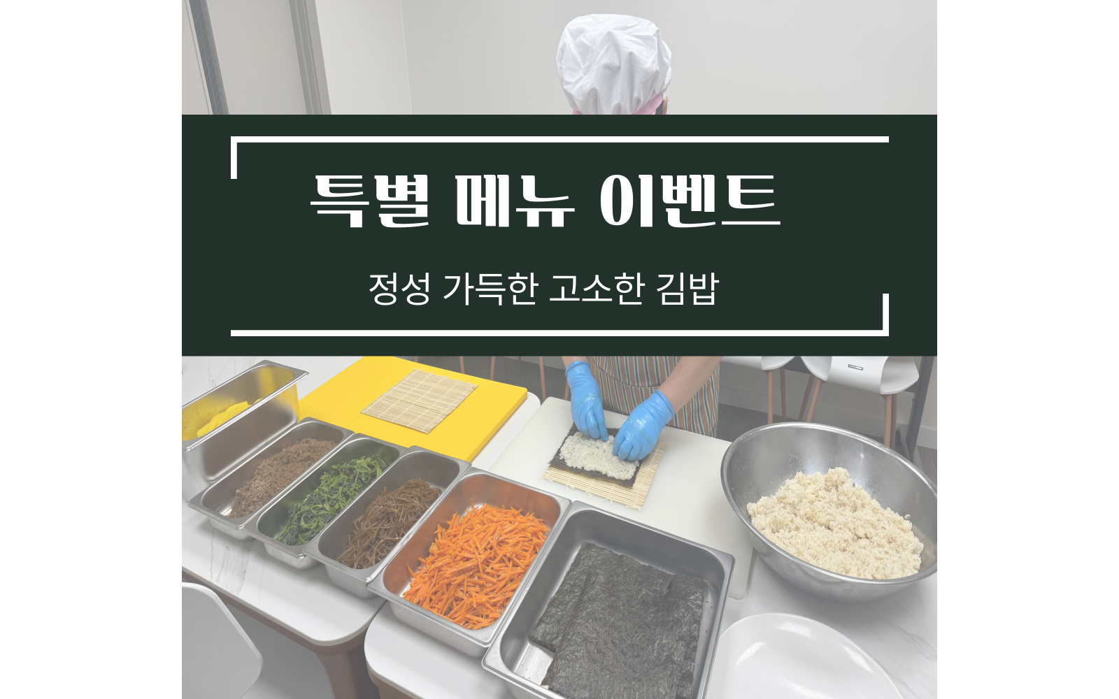 ✅집밥의 따뜻한 정성을 담은 하루 케어링스테이에서는 어르신들께 늘 새로운 즐거움을 드리기 위해 정기적으로 특별한 이벤트 식사를 마련하고 있습니다.이번에는 많은 분들이 평소에도 좋아하시고, 추억이 담긴 음식인 김밥 특식 이벤트를 준비했습니다. ✅집에서 싸준 듯 정겨운 김밥 이번에 준비한 김밥은 외식용 화려한 김밥이 아니라, 집에서 가족이 정성껏 싸주던 김밥 같은 따뜻한 맛을 담았습니다.밥알 하나하나..